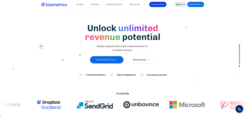 | Revenue and conversion focus | Kissmetrics | Person-centric tracking that connects user behavior directly to revenue |
