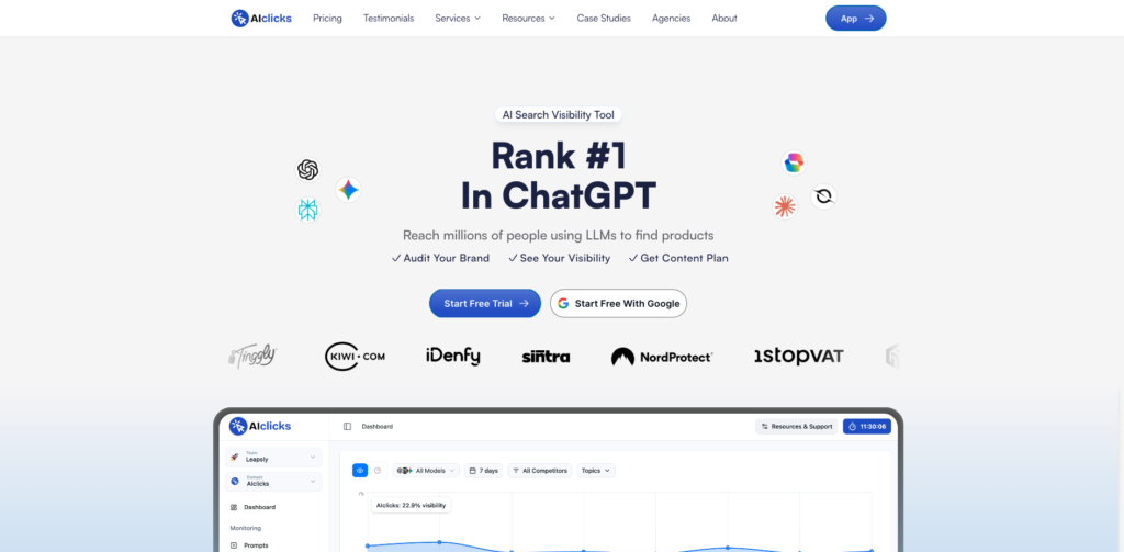 Its user interface is intuitive and supports multiple clients, making it ideal for agencies and large brands. With accurate data on AI mentions and competitor benchmarking, AIclicks helps brands optimize for Claude’s evolving AI search landscape.