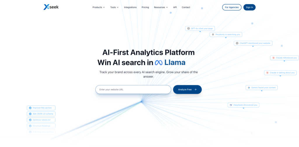 XSeek excels at real-time crawling of Claude’s web index, providing up-to-date visibility data and citation changes that help brands monitor AI presence effectively. Its API enables automation of reports and alerts, which is valuable for agencies managing multiple clients and those integrating AI metrics with legacy SEO tools.
