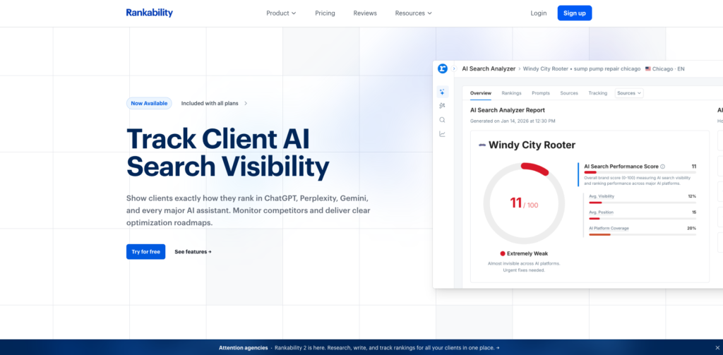| Rankability | Enterprise multi-market | High | Copilot, ChatGPT, Gemini, Claude, Perplexity | White-label reports + volatility tracking | From $149/mo |