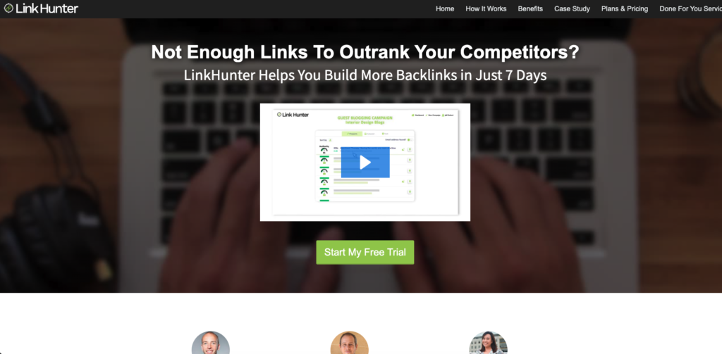Not every link-building operation needs enterprise-level complexity. Link Hunter strips the process down to its essentials: choose a strategy (guest post, product review, or sponsored post), enter your niche topics, and the tool generates a prospect list with contact information. From there, you send outreach emails directly from the platform.