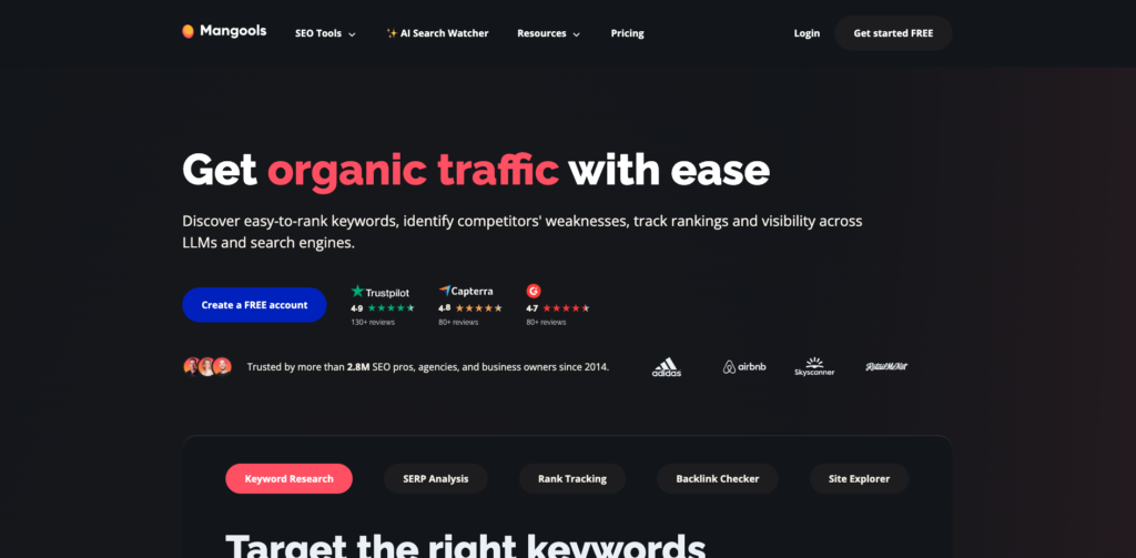 | Mangools | Suite of 5 beginner-friendly SEO tools: KWFinder, SERPWatcher, SERPChecker, LinkMiner, and SiteProfiler. AI Search Watcher is available separately. | Freelancers, bloggers, and SEO beginners want intuitive tools without a steep learning curve. | From $29.90/mo (Entry). Agency $79.90/mo. 35% annual discount. 10-day trial. |