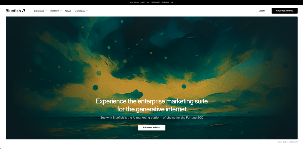 Bluefish AI is an enterprise-grade AI marketing platform built exclusively for Fortune 500 brands. Founded by the team behind PromoteIQ (acquired by Microsoft) and LiveRail (acquired by Facebook), Bluefish raised $24 million in funding and counts Adidas among its enterprise customers. What distinguishes Bluefish is its depth: the platform analyzes millions of prompt responses to understand not just whether AI mentions your brand, but how AI thinks about it. Its Custom AI Audiences feature enables brands to manage AI performance with unprecedented granularity, segmenting analysis by target demographics, product lines, and geographic markets. Bluefish operates across the full marketing funnel, from AI monitoring and brand safety to targeted AI campaigns and measurement.